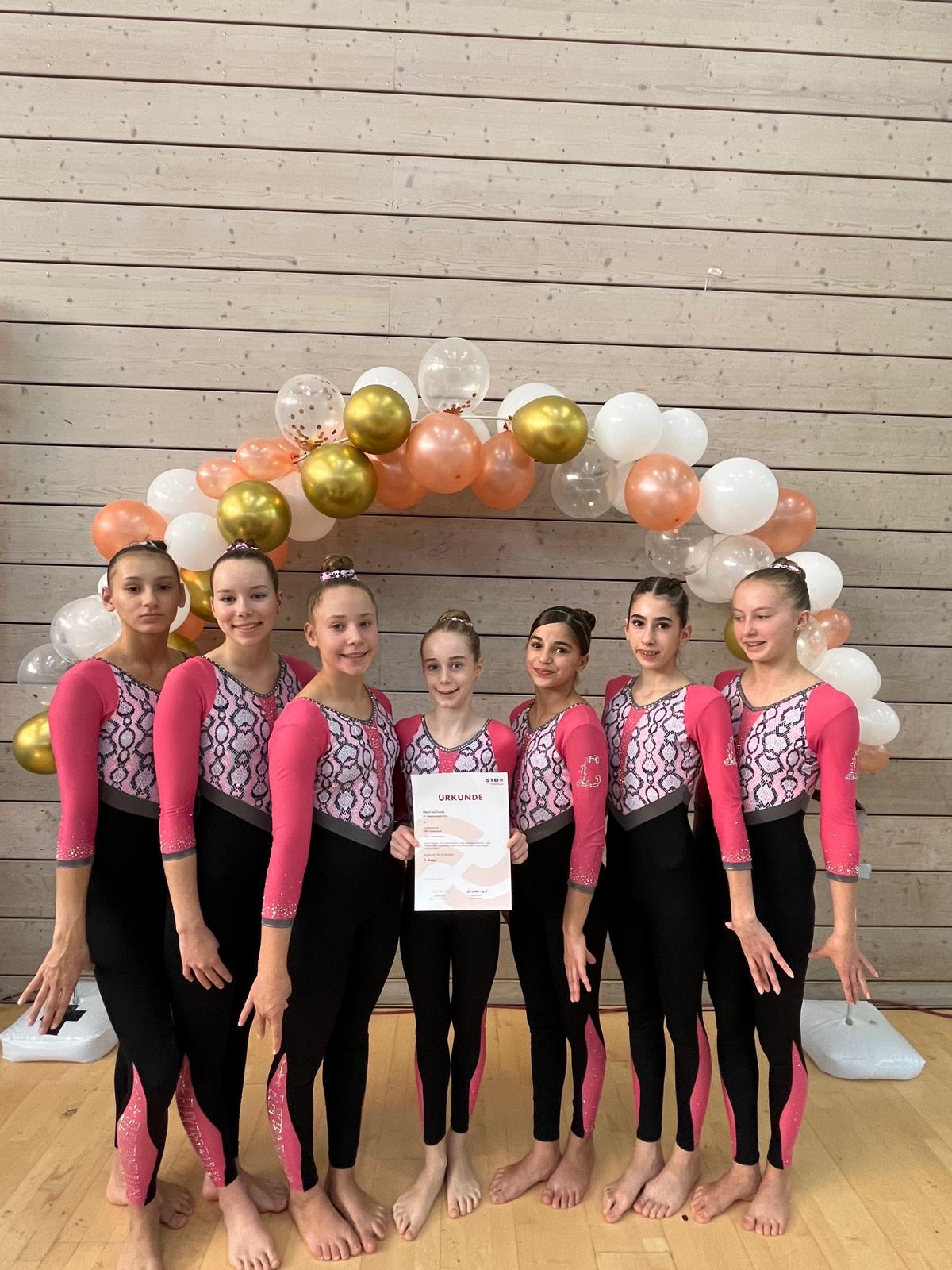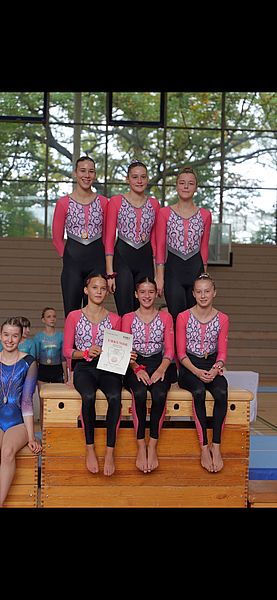 einem guten 5. Plat in der Einzelwertung landete. „Insgesamt sind die Mädels zufrieden mit ihren Leistungen und wir sind jetzt noch mehr motiviert an unserem Heimwettkampf am 15. Juni in Hoheneck neu anzugreifen. Vor heimischem Publikum und mit den gewohnten Geräten ist die Atmosphäre einfach immer positiv.“ – so die Trainerinnen Alexandra Hein und Nadine Schimmel.