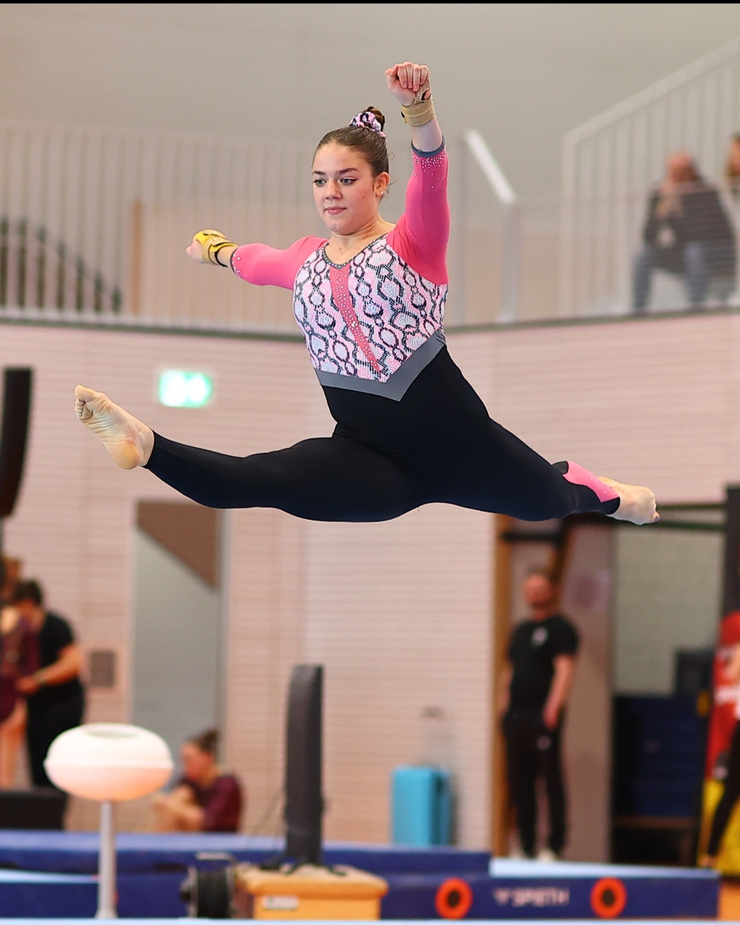 Vor rund 300 Zuschauern nutzten ihre Schützlinge die Heimkulisse und die tolle Stimmung in der Halle für eine „super Leistung. Lara Kauderer hat zum Beispiel am Sprung seit langem mal wieder eine Zwölfer-Wertung erhalten, und Joana Lamatsch hat eine Wahnsinns-Bodenübung geturnt“, lobt Ziegler. Die Joana Lamatsch war am Ende drittbeste Vierkämpferin des gesamten Tages und hatte nur fünf beziehungsweise 15 Hundertstel Rückstand auf die beiden Konkurrentinnen vor ihr. Sehr froh ist Uta Ziegler auch über die gelungene Bodenübungvon Sandrin Ziegler. Denn vor gut einem Jahr hatte die sich an gleicher Stelle einen Kreuzbandriss zugezogen.