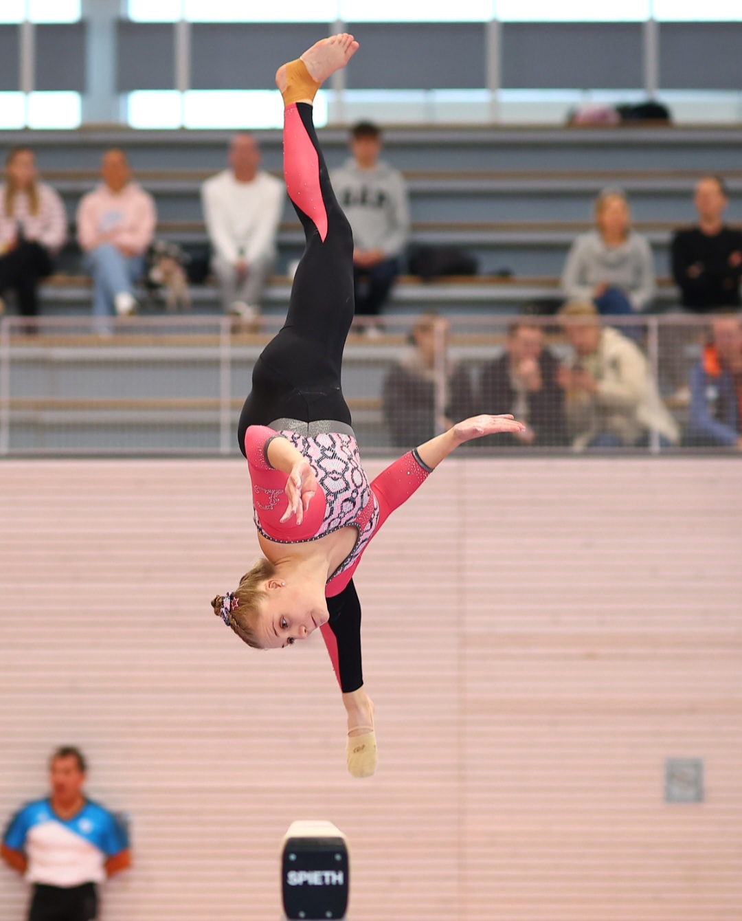 Der Heimvorteil sollte natürlich besonders bei den schön choreografierten Bodenübungen von Vorteil sein und die Schützlinge von Uta Ziegler und Ula Grebenstein machten ihre Sache sehr gut. Mit 13,1 Pkt. erreichte Valentina Herbst die höchste Wertung für ihr Team, dies sollte auch die höchste Tageswertung sein.